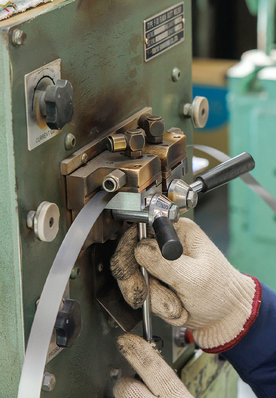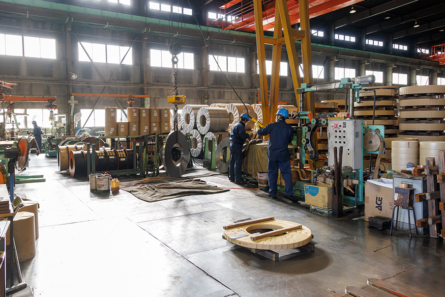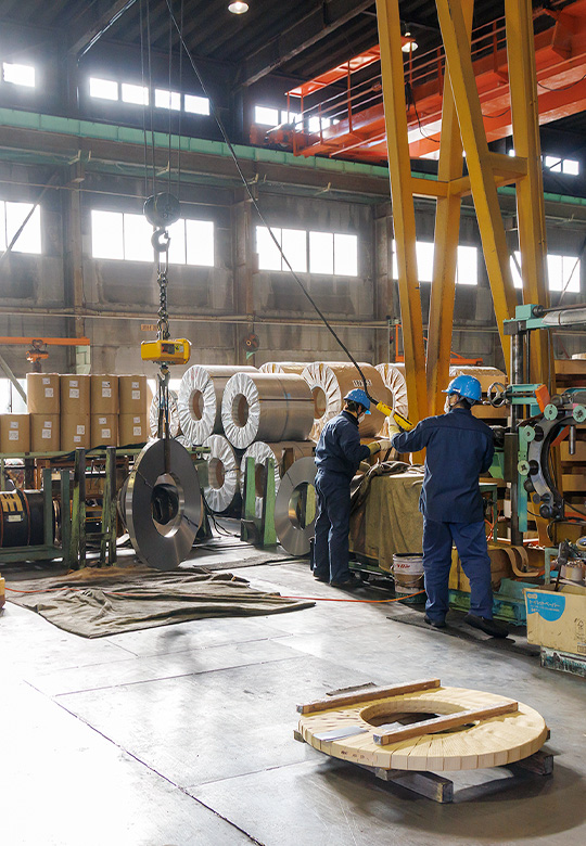 製品は傘骨、小刀、鋸、ペン先、ハトメホック等に広く使われ、圧延機・焼鈍炉・切断機等の独自設備で、需要家様に精度の良い使用目的に合致した帯鋼をお届けしてまいりました。