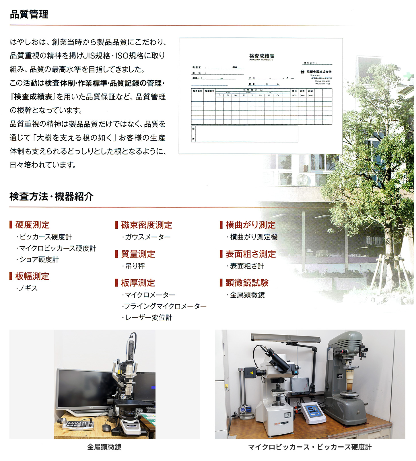 - 原材料の受入検査から工程内検査、出荷前検査まで、品質管理体制を整えております。安定した品質を提供できるよう管理を徹底しています。