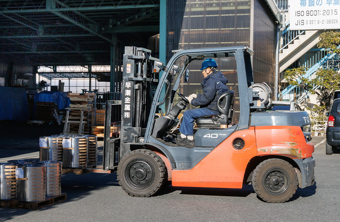 当社は、軸受メーカーなどの要望に合わせて、切断・加工・配送準備を行う流通の拠点となっており、ジャストインタイムの納品や在庫管理を行い、鉄鋼流通に不可欠な役割を担っている自動車産業の根っこのような会社です。